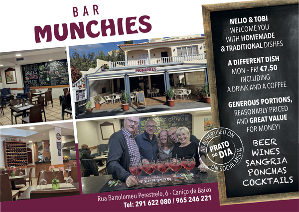 Munchies BarCaniçoRua Babtolomeu Perestrelo, 6291 622 080 / 965 246 22110%Nelio & Tobi welcome you with homemade & traditional dishes. Prato do Dia is advertised on social media – a different dish every day Mon – Fri for just €9.95 including a drink and a coffee. Generous portions, reasonably priced and great value for money! Beer, Wines, Ponchas and Cocktails.
