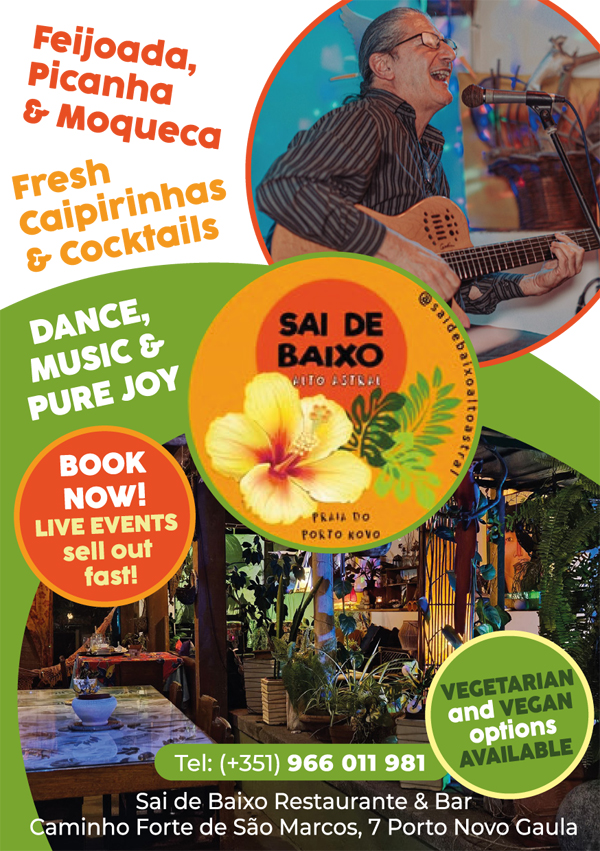 Sai de Baixo Alto Astral Bar and RestaurantGaulaCaminho Forte de São Marcos, 7 - Porto Novo966 011 98110%Sai de Baixo Alto Astral Bar and Restaurant is a vibrant Brazilian spot, full of music, colour and warmth. Known for its lively welcoming atmosphere, tasty cocktails, and authentic homemade Brazilian food, including special vegetarian & vegan options from chef Marisol. All are welcome to dance, sing, party, or simply relax and enjoy the joyful and unforgettable spirit of Brazil.