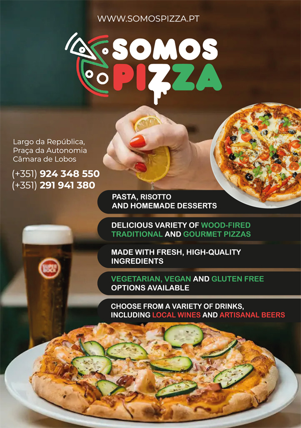 Somos PizzaCâmara de LobosLargo da Republica, Praca da Autonomia924 348 550 / 291 941 38010%Our restaurant and pizzeria prides itself on using only the freshest ingredients to create exquisite pizzas and authentic Italian dishes. From our flavourful pastas to our perfectly baked pizzas, every bite is a testament to quality. We also offer unique experiences for children, including interactive pizza-making workshops and other engaging activities. Come and enjoy authentic Italian pizza with us.