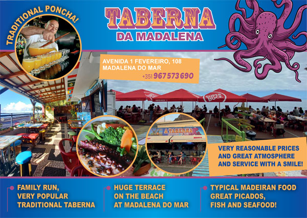 Taberna da MadalenaMadalena Do MarAvenida 1 Fevereiro, 108967 573 69010%Family run, very popular traditional Taberna at Madalena do Mar. They have a huge terrace on the beach in summer month. Typical Madeiran food - great Picados, Octopus, Fish and Seafood. Very reasonable prices and great atmosphere and service with a smile! Great sunsets!